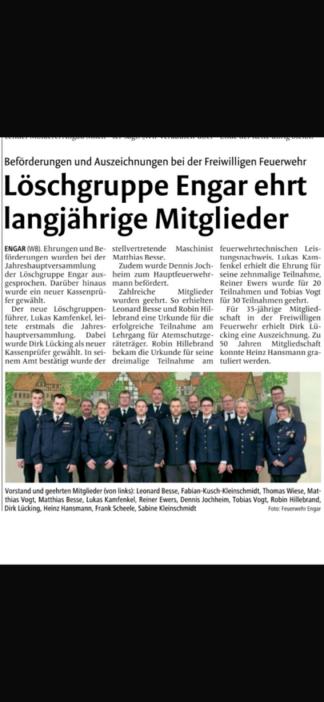 Jahreshauptversammlung Feuerwehr Engar 4. März 2026 von Sabine in Allgemein Jahreshauptversammlung am Rosenmontag der Feuerwehr Engar